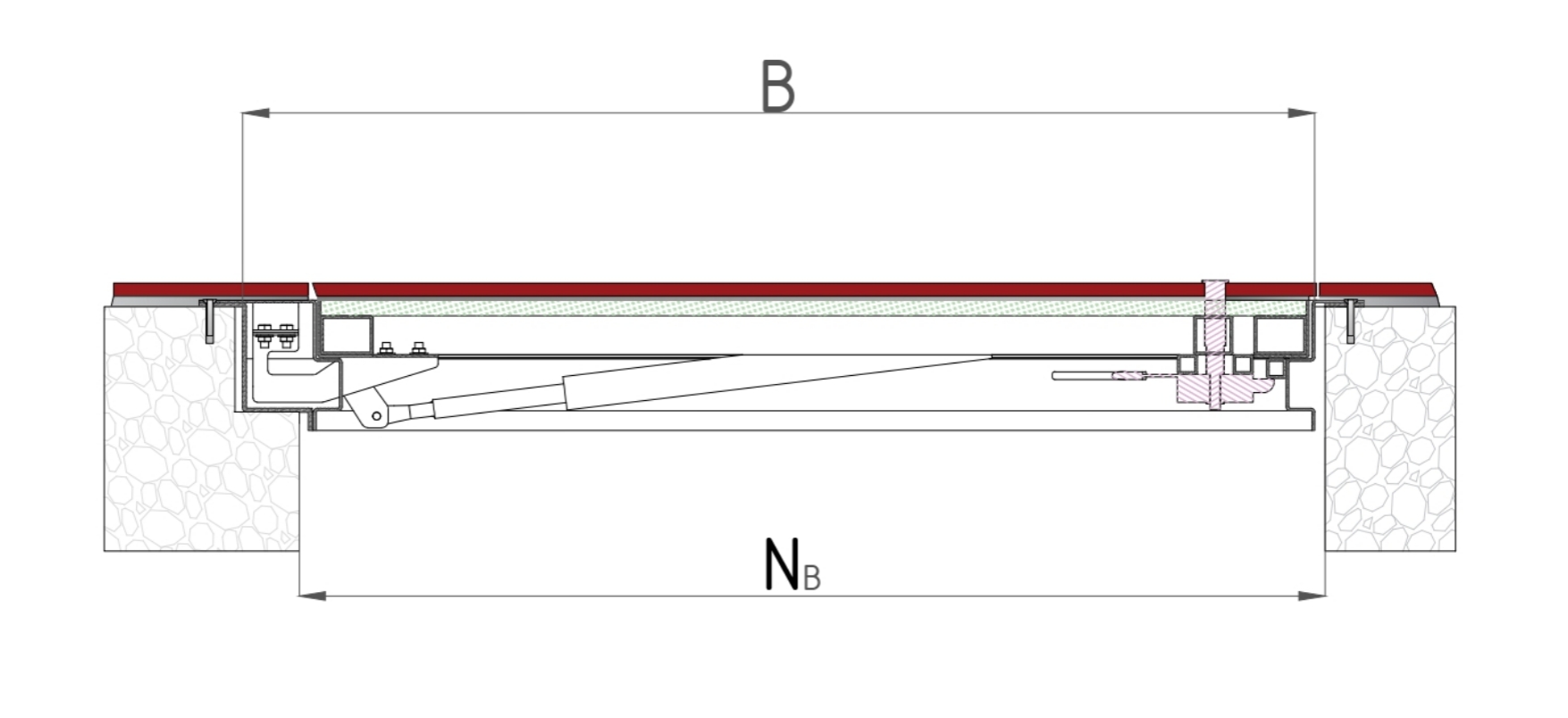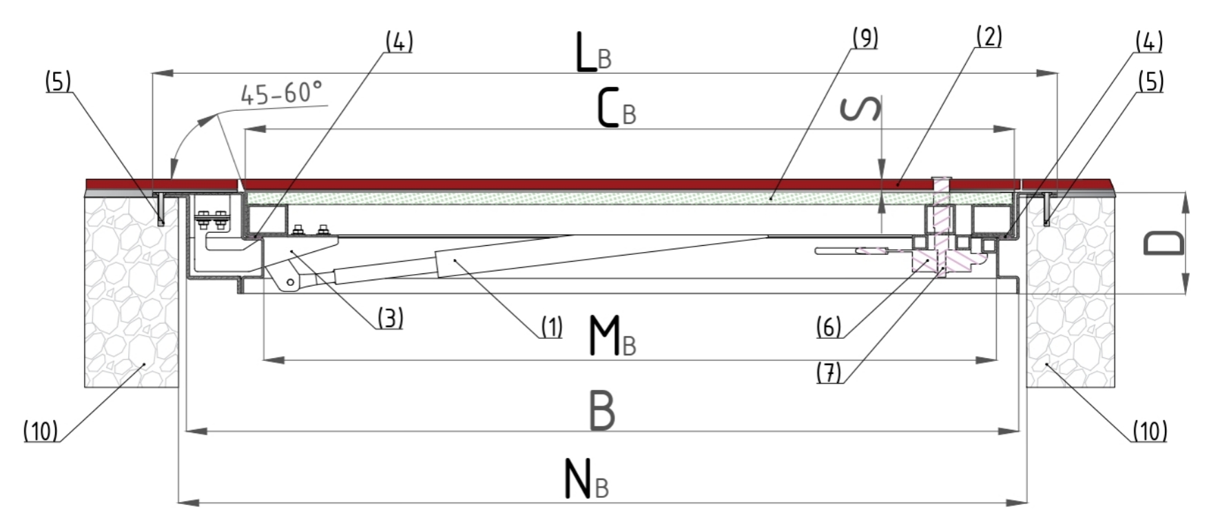 | LB = B + 72mm | Overall height of the hatch |