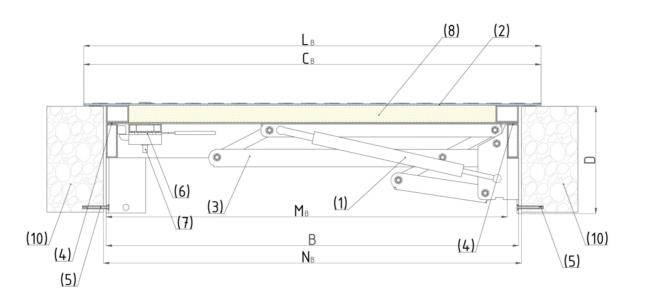 The hatch’s design allows for easy integration into any type of flooring. Its cover is fitted with a 3 mm thick metal treat plate for enhanced durability and slip resistance. This model is compatible with all base types and can be installed into an existing opening with finished flooring