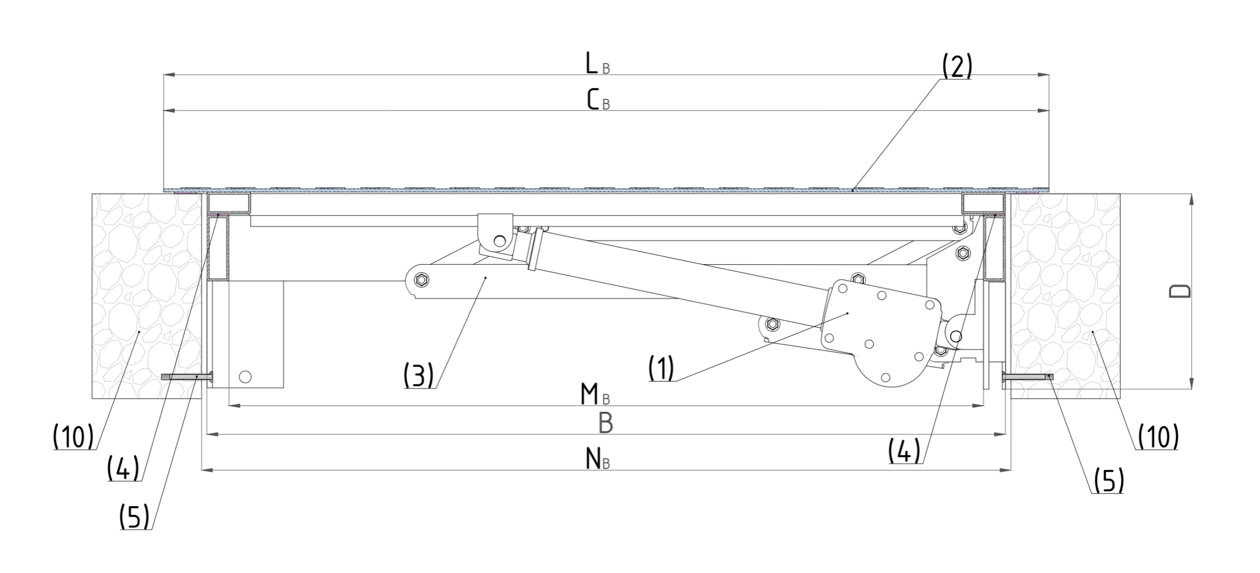 | MB = B - 40mm | Clear opening height |