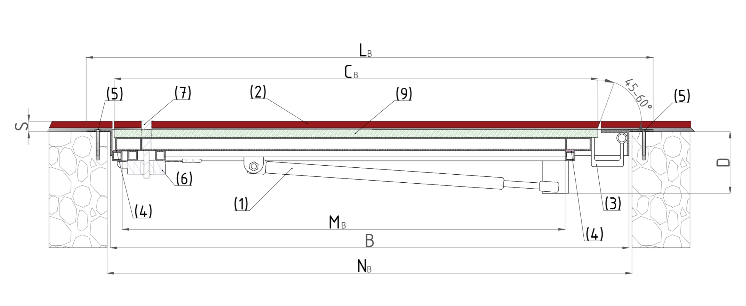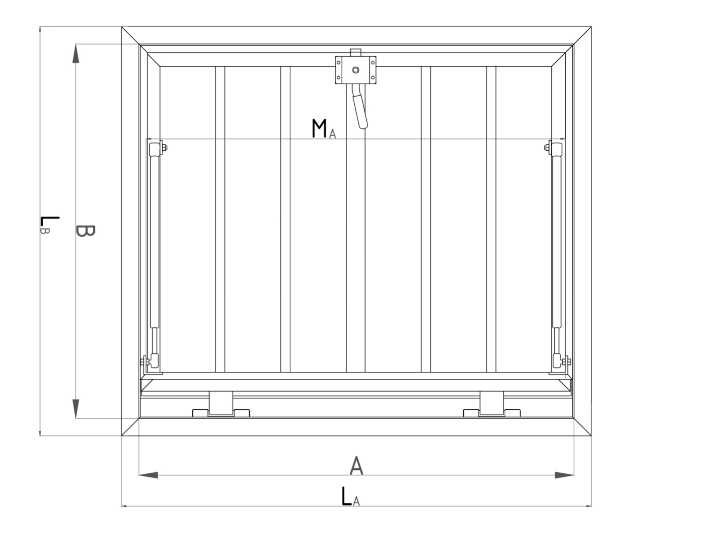 | LA = A + 74mm | Overall width of the hatch (hinge side) |