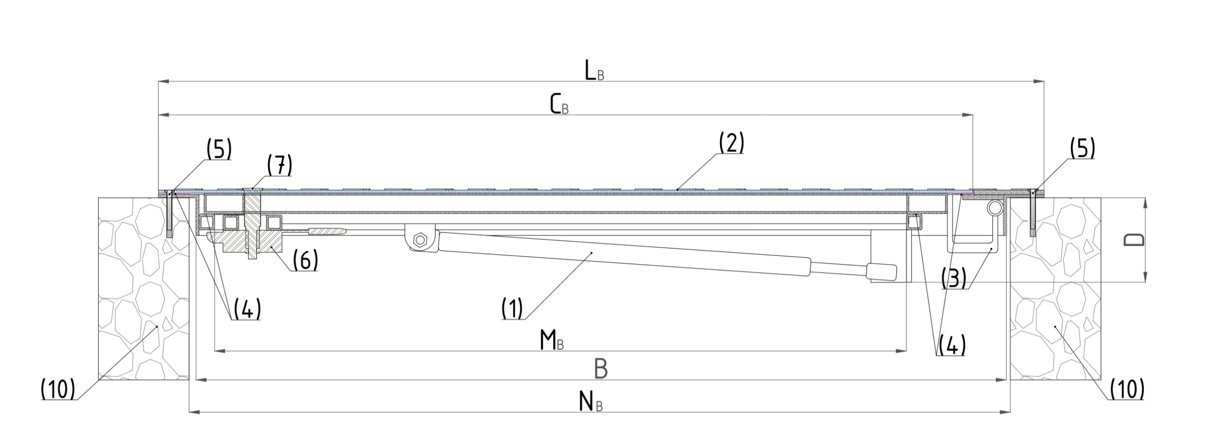 | LA = A + 74mm | Overall width of the hatch (hinge side) |